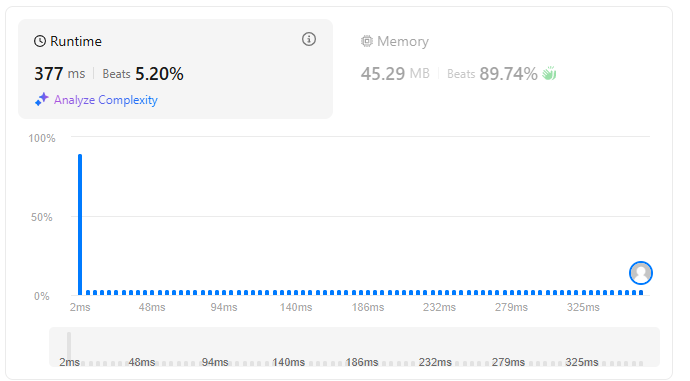 일단 빠르게 1차로 풀고자 생각나는대로 작성해봤더니 성능 저 바다 저편이고 시간복잡도는 O(n 제곱) 수준이라 다른 방법 생각날듯말듯한데 2차로 풀 때도 답안보고 다시 풀어봐야 할 듯